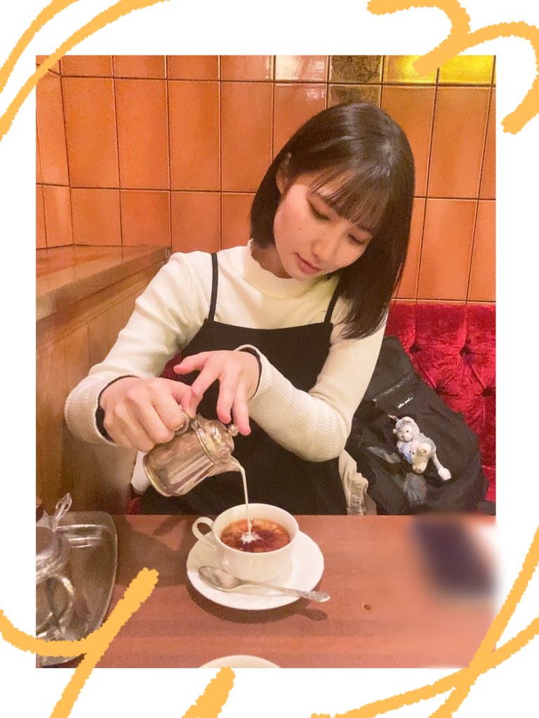 牛乳を注ぐあずちゃ☺️☺️☺️ 美味しいミルクティーにごきげん! https://t.co/IJ6kuHmAS2