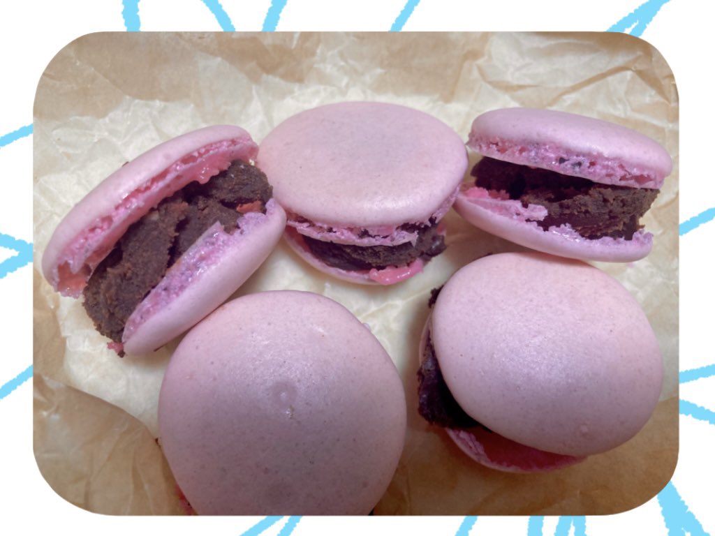 えびせんみたいなマカロンを作った日からひと月、2人で念願のリベンジ! (あんこじゃないよ、ガチガチのガナッシュ) https://t.co/aJYCnGCsmX https://t.co/7XfTilUelO