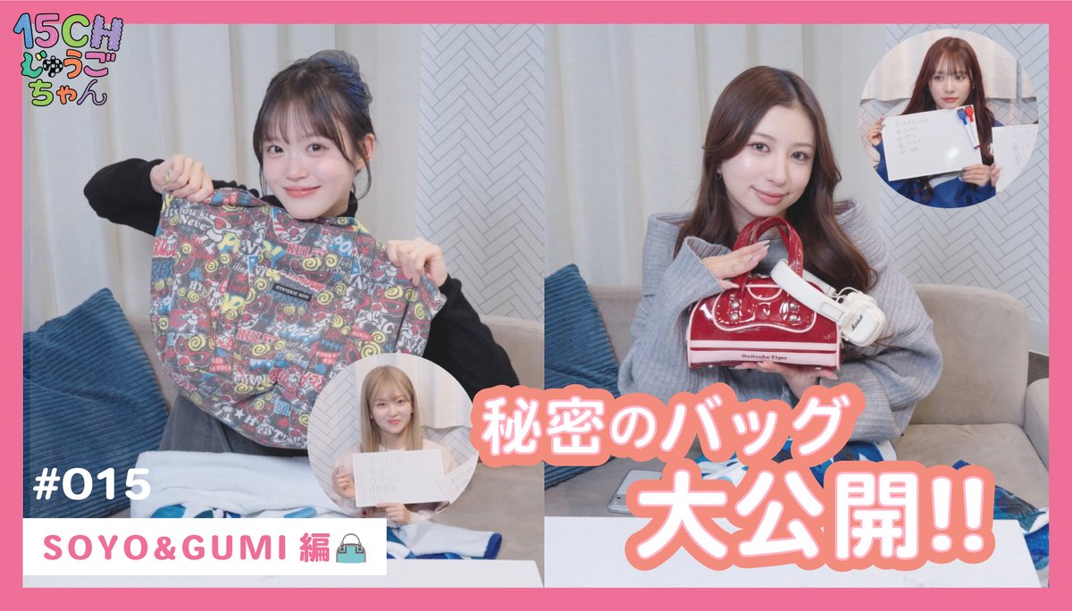 @onefive | 「15CH (じゅうごちゃん)」 🎥 EP.015公開! 🔗 https://t.co/EXP8MXXXFY 今回は、SOYO&GUMIの 秘密のバッグ大公開👜✨ ライブの時の必需品を メンバー同士で当てていきます🎯 #15CH #onefive https://t.co/sWN36RKFOx