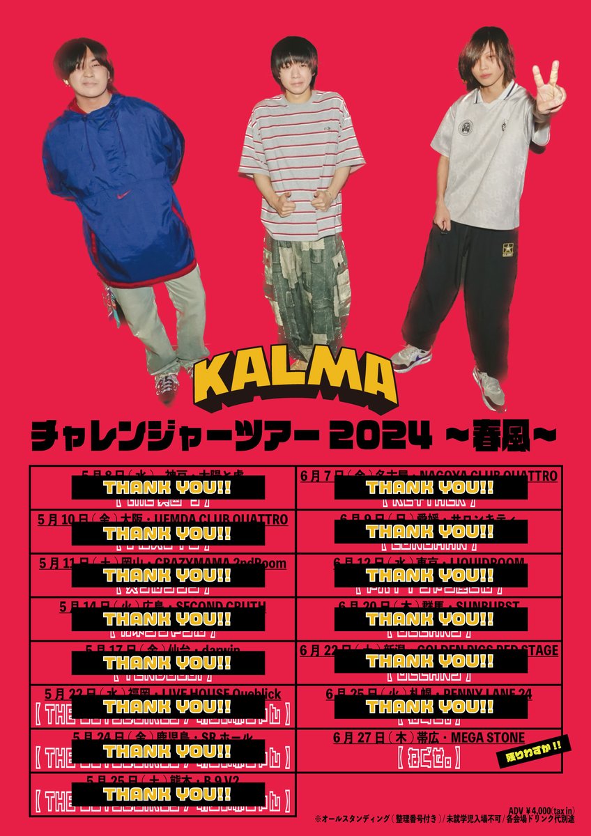 【 全公演終了 】 KALMA pre. 対バンツアー 『チャレンジャーツアー2024〜春風〜』 全15公演が終了しました!!!! 各地ご来場頂いた皆様 ありがとうございました!!!! photo by (@MmmuSic_ai ) https://t.co/Zx4Qa6kI9q