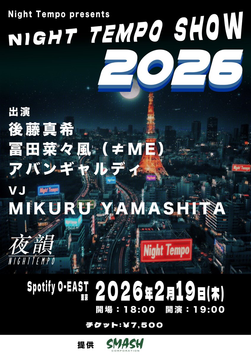 2月19日ライブの追加ゲストに後藤真希さんと冨田菜々風(≠ME) さんの出演が決まりました。 - GUEST - 後藤真希 🆕 冨田菜々風(≠ME) 🆕 Avantgardey VJ:MIKURU YAMASHITA(BOXOP) The Night Tempo Show 2026 2026/2/19 (Thu)東京 Spotify O-EAST チケット発売中 : https://t.co/P0raWyXOdF https://t.co/W3vq2Dq7am