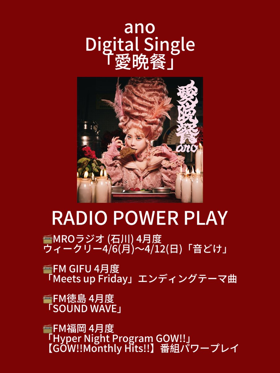 【MUSIC】 4/8配信Sg.「#愛晩餐 」🥀🍴 (テレ東ほか ドラマ「#惡の華 」主題歌)が ラジオ各局のパワープレイを頂きました📻 ✅Pre-add / Pre-saveはこちら https://t.co/MnyaLzXaek 🎧Streaming / DL https://t.co/xfC3QLwfco ※4/8 AM0:00より有効 ぜひチェックしてください! #ドラマ惡の華 https://t.co/qhqBmKbzK2