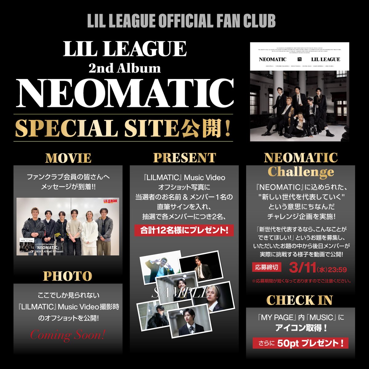 / #LILファンクラブ 🧡 \ 2nd Album『NEOMATIC』のリリースを記念して SPECIAL SITEがオープン✨ ぜひチェックしてください! 👇SPECIAL SITEはこちら https://t.co/BEBk5TL60Z #LILLEAGUE #LIL_NEOMATIC https://t.co/WxvCv7iCtv