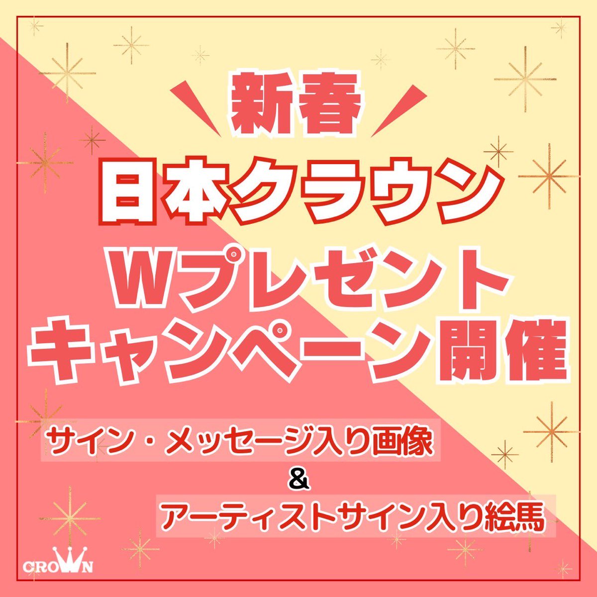 お知らせ⋆͛📢⋆ 【新春!日本クラウンWプレゼントキャンペーン】 サイン入り絵馬や、メッセージ付き画像がもらえるお正月の企画がスタート✨ https://t.co/vrhjVy3h1q 詳細をチェックしてぜひご参加ください! 応募期間:1月1日~1月14日 ●Spotifyフォローキャンペーン https://t.co/3RxMqpWvLH https://t.co/nz5nLE2Dev