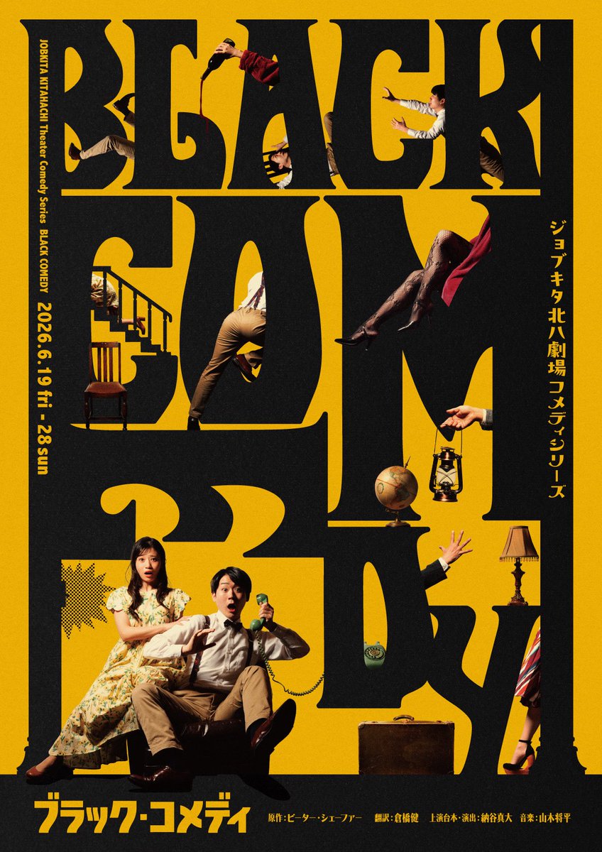 🟨💃ビジュアル公開🕺⬛️ 『ブラック・コメディ』 6/19(金)〜6/28(日) 💥なんと追加情報💥 初日6/19(金)の終演後、 STVラジオ『TIME for Theater』の 公開収録アフタートークを行います‼️ 舞台を見た後に、是非そのまま公開収録も見ていってください🙂↕️📻💫 #TFT演劇のラジオ #ブラックコメディ https://t.co/Wa9MBCx0Iv