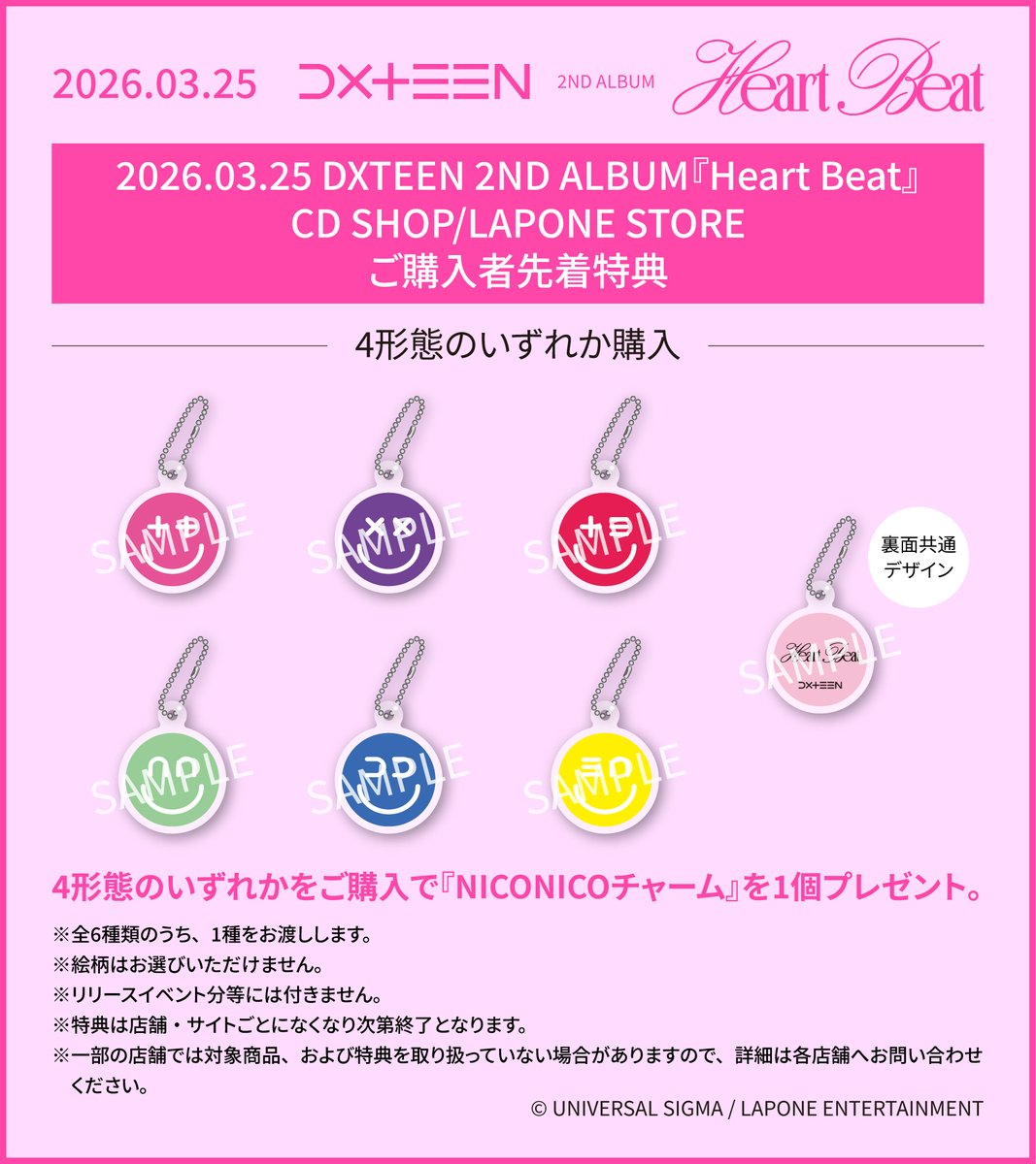 [📢] 2026年3月25日(水)発売 DXTEEN 2ND ALBUM『Heart Beat』 CD SHOP/LAPONE STOREご購入者 先着特典の絵柄を公開!💓 詳細はこちら🔽 https://t.co/Ep9Jq5nuS5 #DXTEEN #DXTN #DXTEEN_HeartBeat https://t.co/vbO59wcAyl