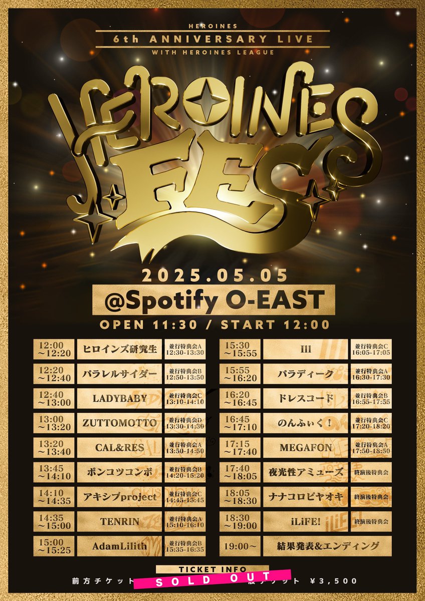 5/5(月) HEROINES FESのタイムテーブルに変更があります⚠️