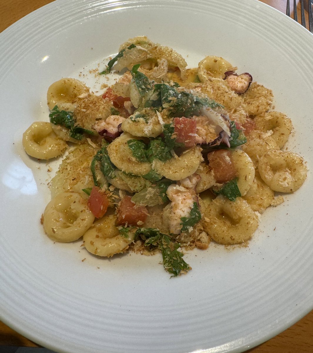 たことセロリとトマトの耳たぶパスタにパン粉がかかってておいしかった この後チーズケーキとだんご2本とグミ4粒と草もちとたけのこ豚肉炒め食べたから今からリングフィットに全力出す https://t.co/Zs9LUJ2sKX