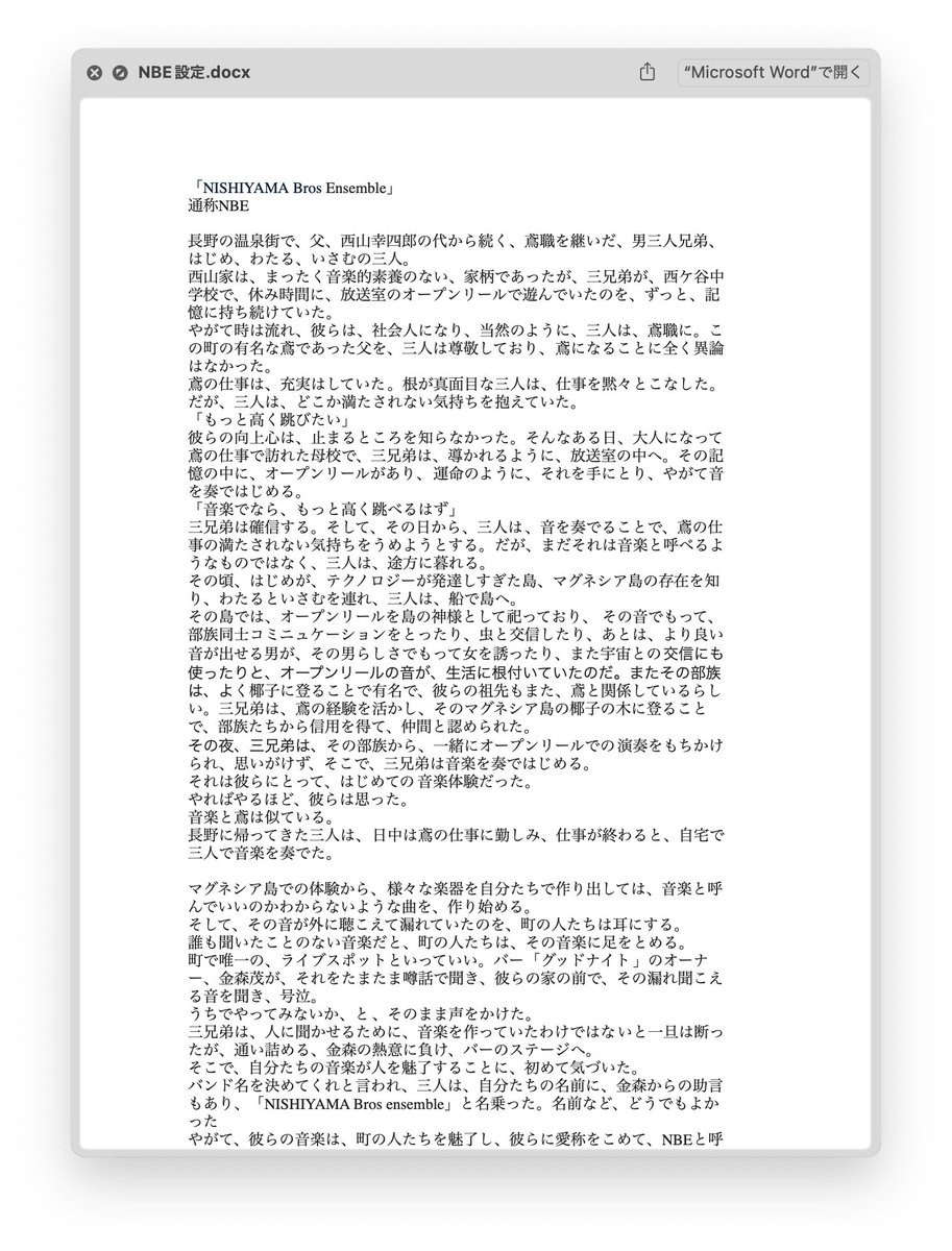 撮影期間の前に沖田監督から送られてきた西山三兄弟の裏設定がこちらです。