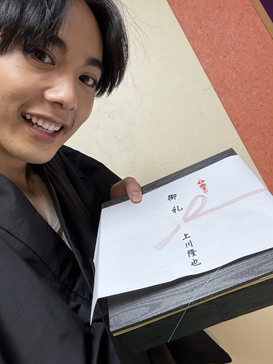 上川隆也様、藤原紀香様 よりクリスマスプレゼントいただきました! 父上母上ありがとうございます! そして1年で1番好きな日を1番好きなことをして過ごすのはすごく贅沢なことですね! 舞台忠臣蔵本日もありがとうございました!! メリークリスマース🎄 https://t.co/xRDMys2G9X