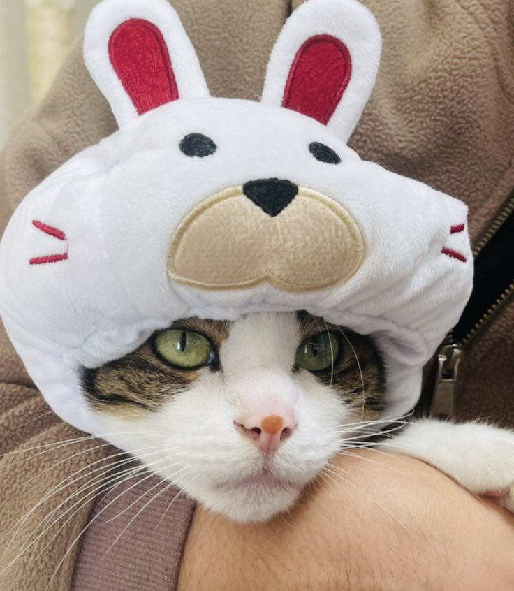 新年明けましておめでとうございます。昨年も沢山の皆様に大変お世話になりました。本年もどうぞよろしくお願いします。兎のように皆様も自分も飛躍の年となりますように。うちの王様は新年早々うさぎにされてぶーたれております。 https://t.co/V6XJC6omRi