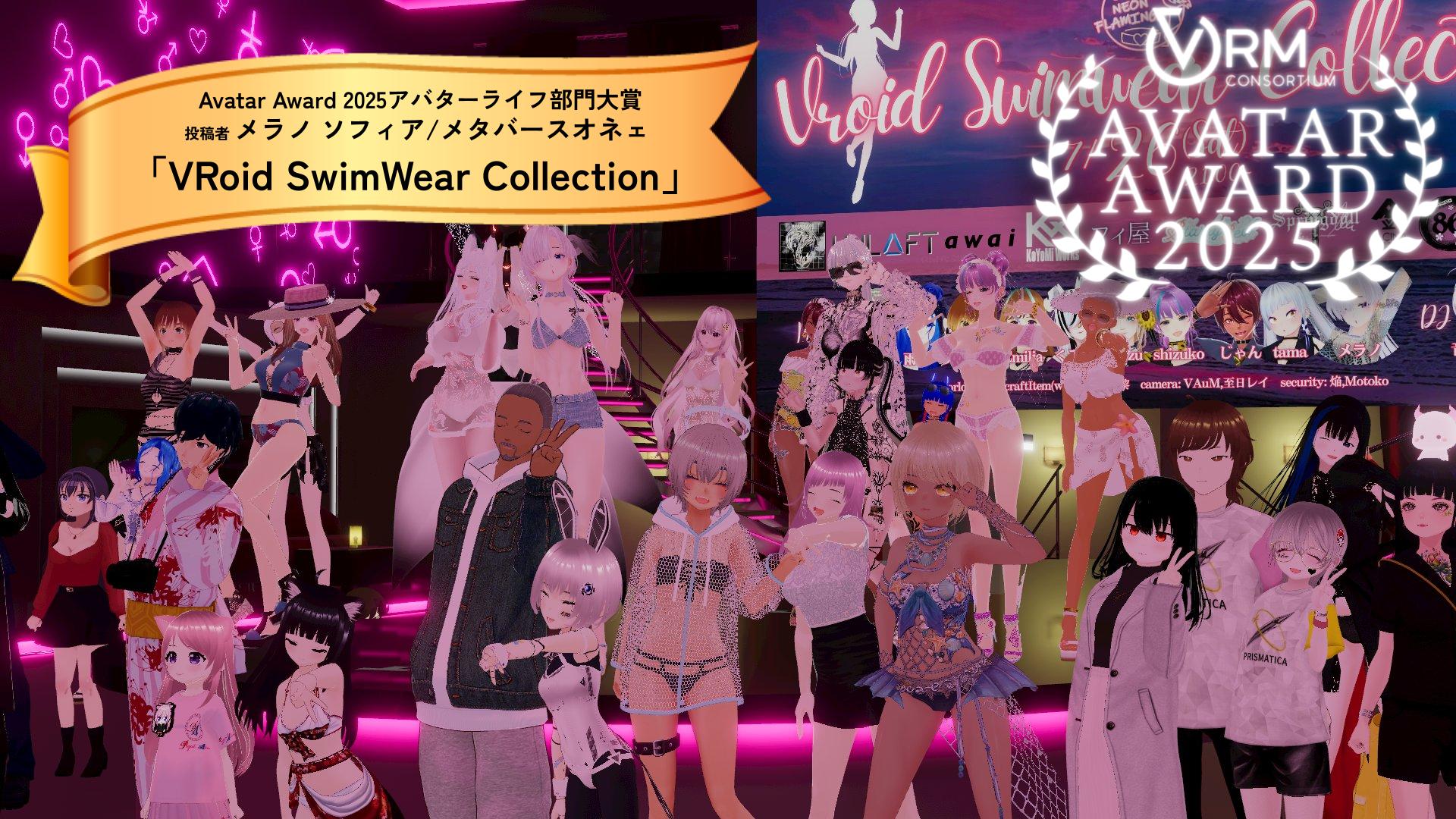 アバターならではの活動とその「日常」をテーマとする「アバターライフ部門」も今年も開催。145点の応募が集まり、「VRoid SwimWear Collection」 (投稿者︓メラノ ソフィア/メタバースオネェ⽒)が⼤賞を受賞しました。