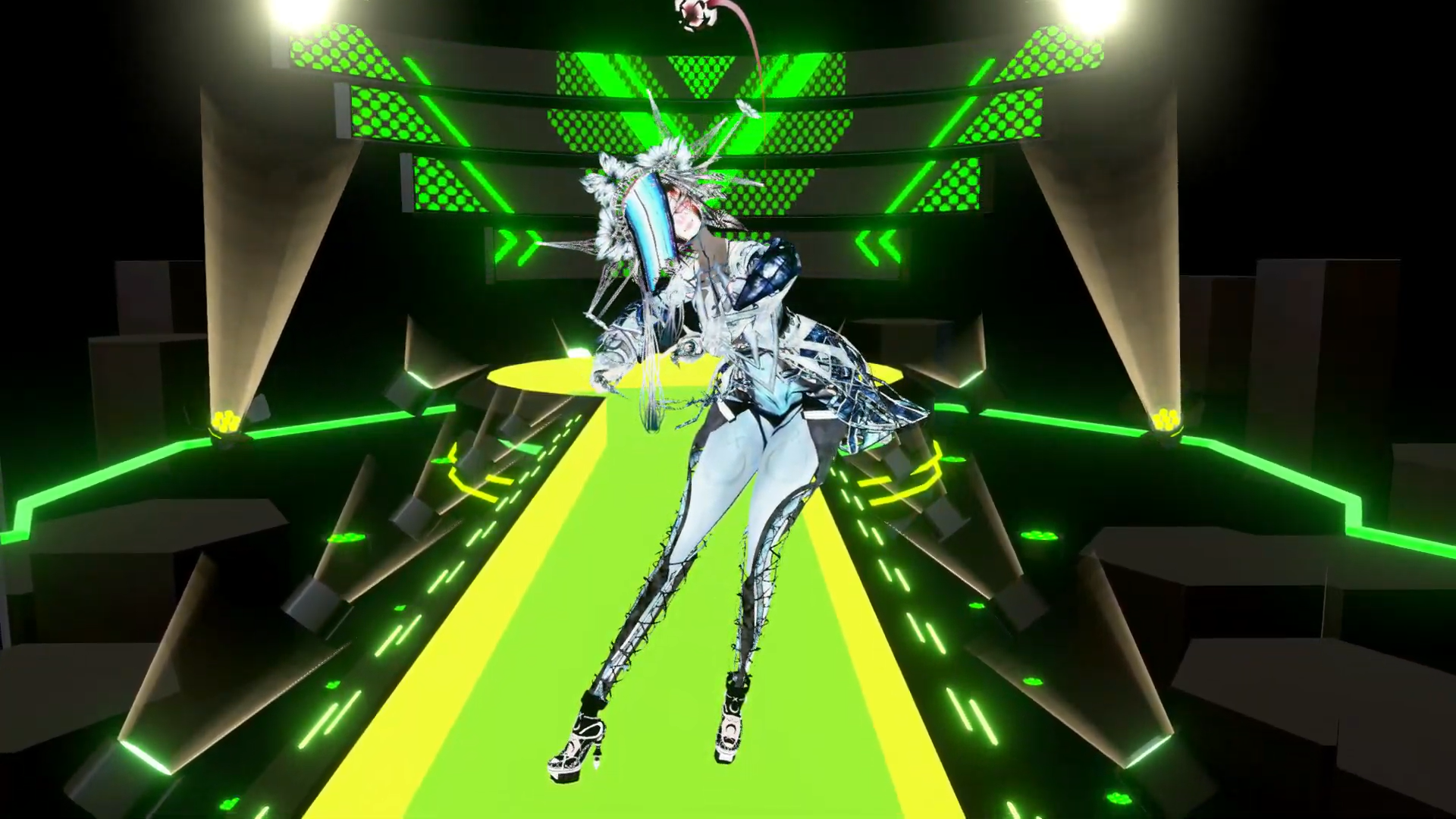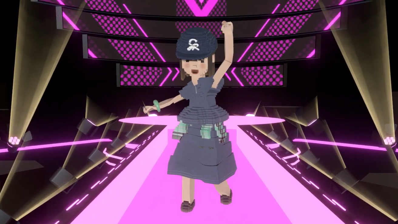 ・軍地:ポップなカラー、謎の被り物、常識を超えながら最高に可愛い!今までのアバターワードは、いかに緻密に書き込むかという流れがありましたが、ポンポンを含めた表現がファニーで抜け感がある。単純にファッション誌にこの子が出てきたら可愛いな、見たことないなって思う。まず表現がいい。なにげにカラーリングがポップで、今っぽいっていうところがすごく気に入りました。・三木:アバターデザインもいい意味で不可思議だが、ランウェイのポーズも謎すぎてよかった。奇妙な動きも含めて衣装と合っていてまさしく『アバター』として素晴らしいです。