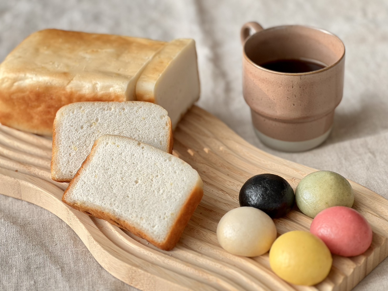 五行に対応した5色の生地を組み合わせたパンで、一口ごとに異なる色と風味が楽しめ、見た目からも五行のエネルギーを感じられる逸品です。