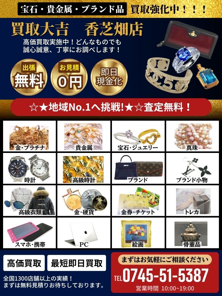 ●公式HP:https://www.kaitori-daikichi.jp/store/kashiba-hata/