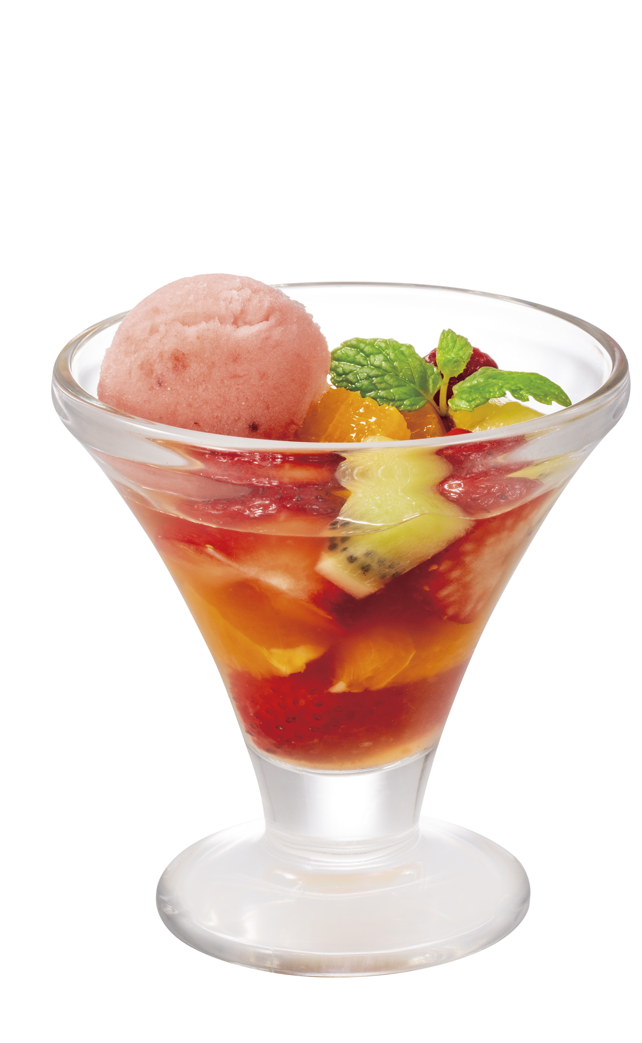 イタリア発祥の冷たいデザート「マチェドニア」は、数種類のフルーツを混ぜ合わせてシロップなどに漬け込んだ、イタリア版フルーツポンチです。デニーズでは、旬のいちごに、キウイフルーツ、オレンジ、ラズベリーとシトラス系のシロップを合わせて、彩りもあざやかに仕立てました。甘酸っぱい風味のいちごソルベとともに、さっぱりとした味わいをお楽しみいただけます。