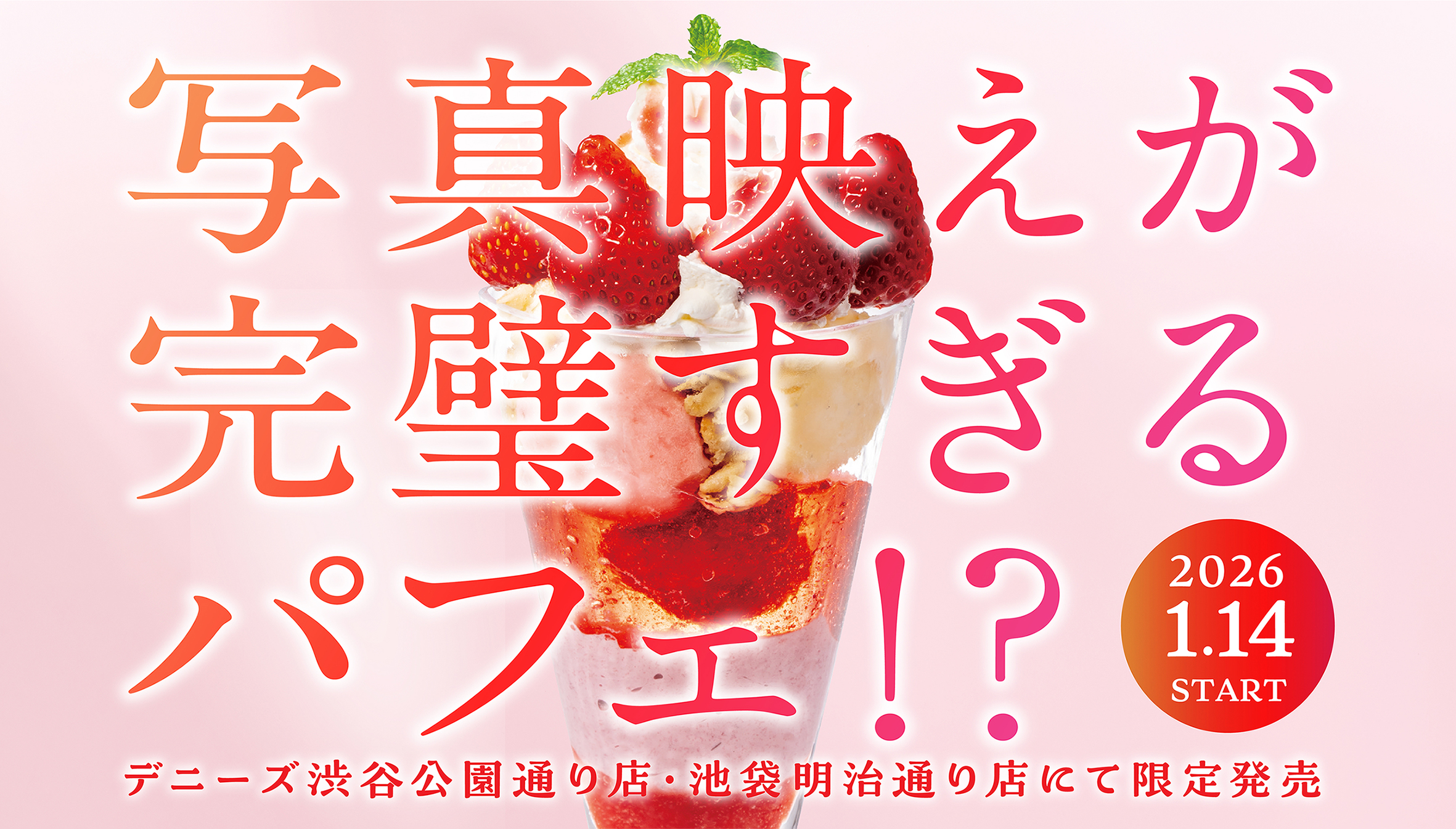 株式会社デニーズジャパン(本社:東京都千代田区、代表取締役:小松雅美)は、2026年1月14日(水)より、旬の国産いちごを使用した「いちごデザート」を全国のデニーズ店舗にて期間限定で販売します。今年は、全11品の豊富なラインナップを取り揃え、なかでもイチオシは、初登場となる「フルーツマチェドニアサンデー」です。
