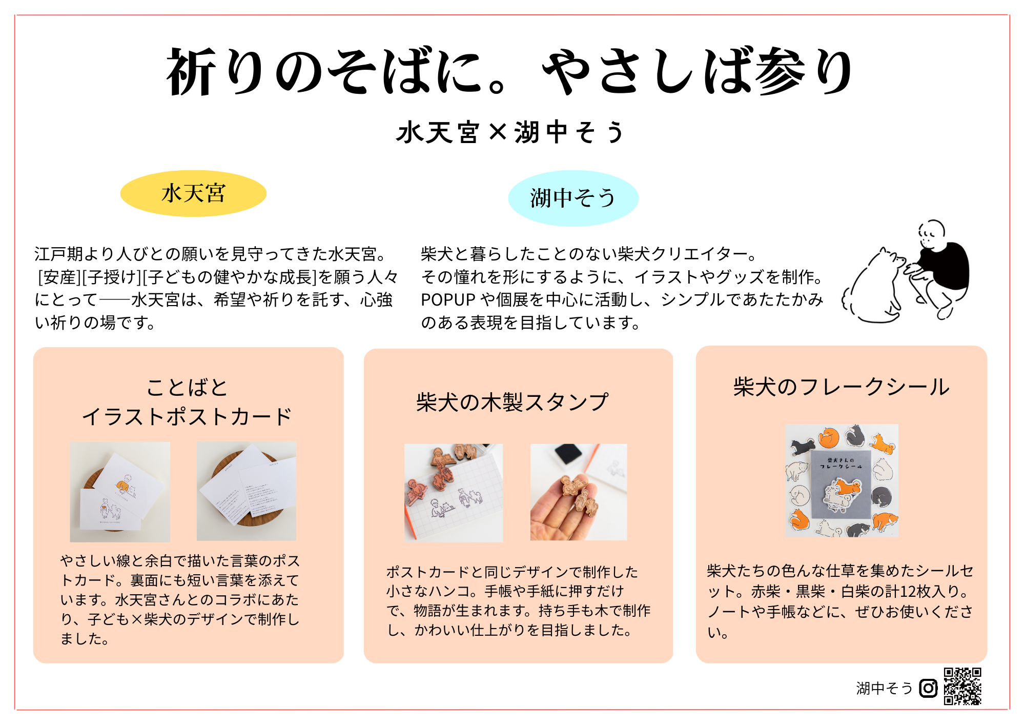 この度、水天宮(東京都中央区日本橋)にて、柴犬のイラストで有名な湖中そう氏とのコラボ企画を開催いたします。