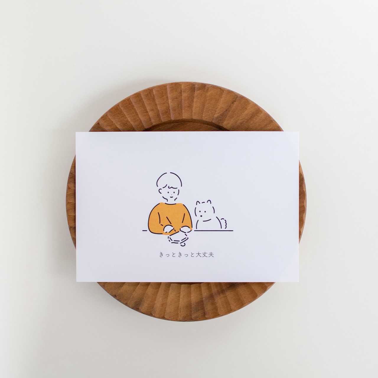 子ども×柴犬のデザインをあしらい、やさしい線と余白で描いた言葉のポストカード