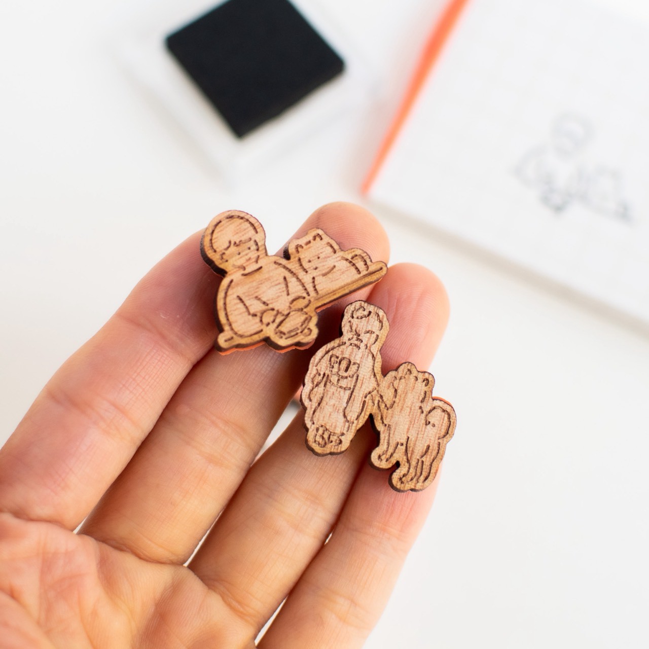 ポストカードと同じデザインをあしらい、持ち手も木で製作したかわいいデザインのスタンプ