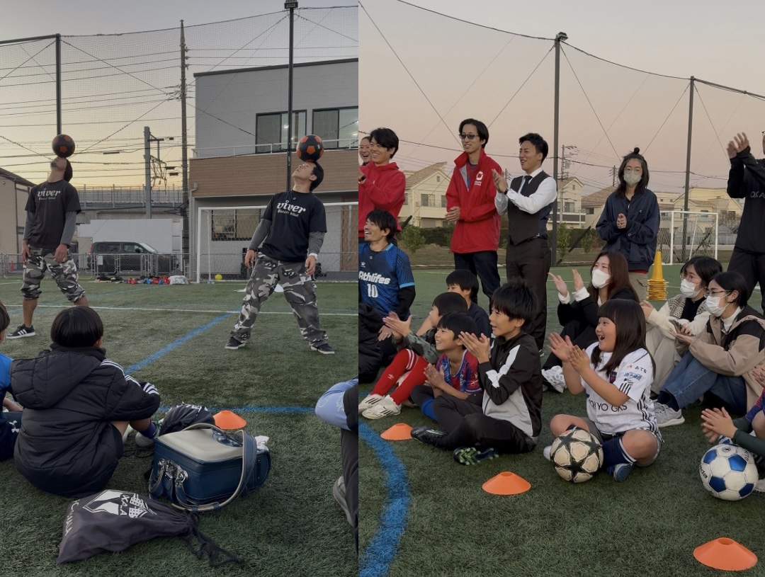 披露の後は、子供たちも技に挑戦。「難しい!」「できた!」と声を上げながら、サッカーの新しい楽しさを肌で感じていました。