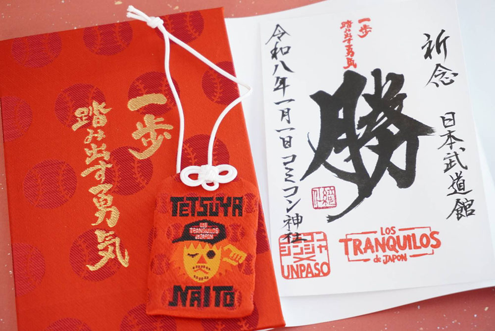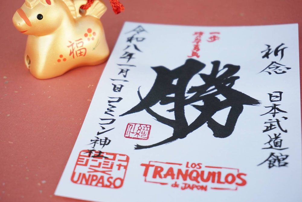 揮毫文字には、新しい一年のスタートにふさわしく、そしてLOS TRAQUILOS de JAPONのさらなる活躍を祈念し「勝」の一文字を選定。今後発行するものも含め「御勝印」と名付けました。