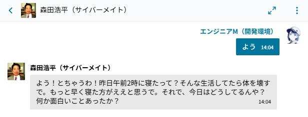 画面でのアドバイスだけでなく、メイトとのチャット会話でもメイトが健康データを考慮した反応を示すことがあり、