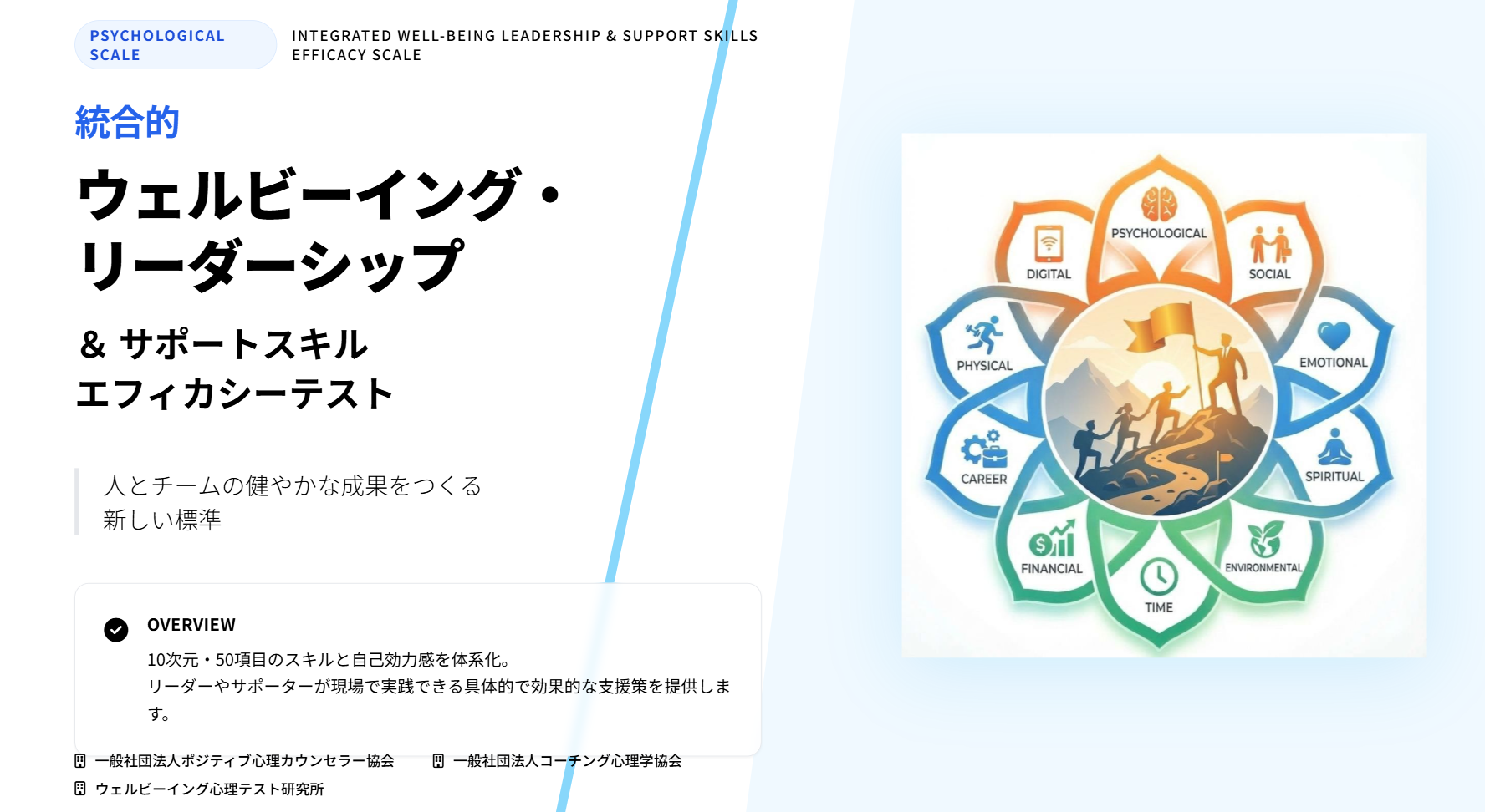 「10の統合的ウェルビーイング・リーダーシップ・サポートスキルテスト(IWBSS-S:Integrated Well-Being Support Skills Scale)」を開発・公開しました。