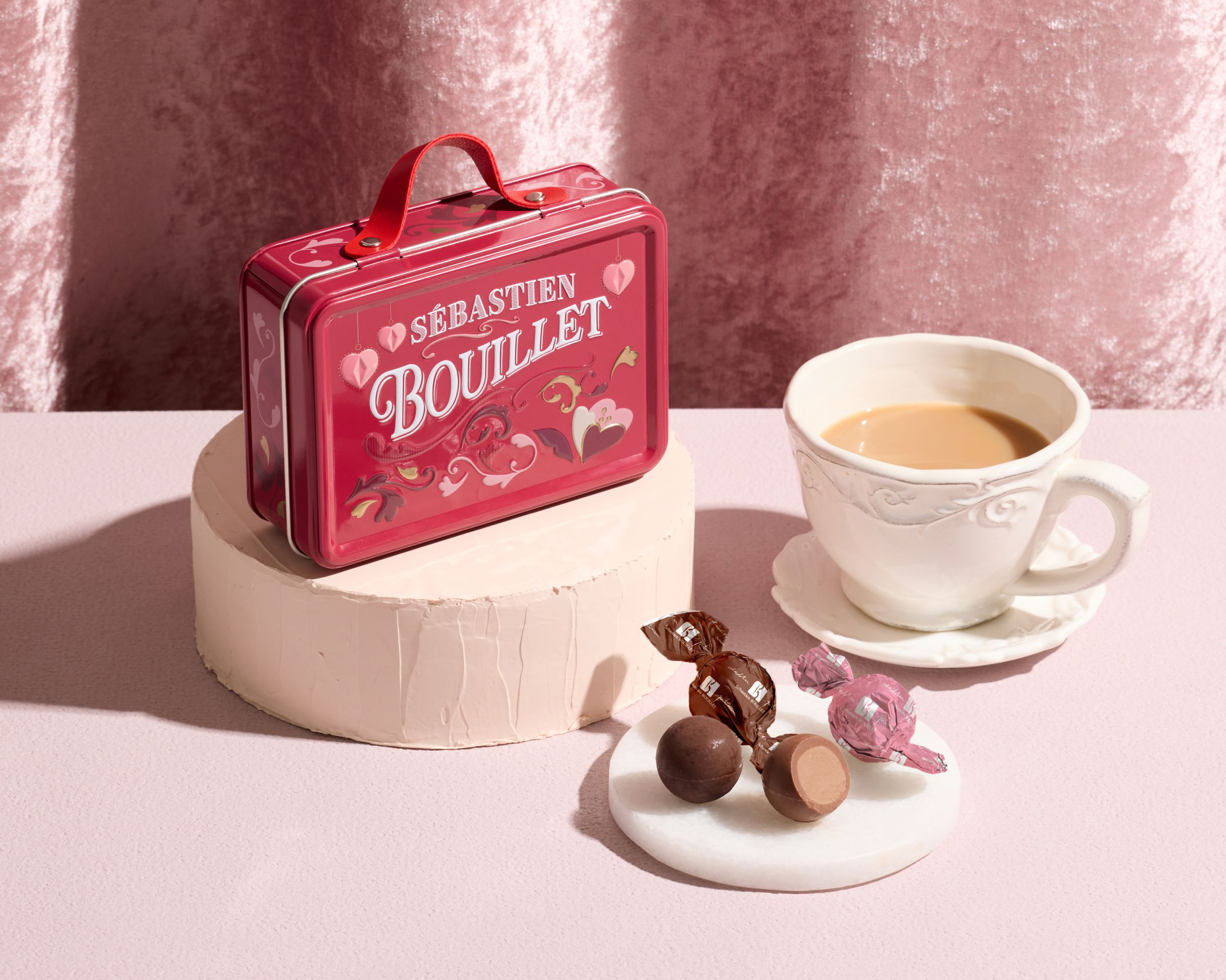 旅のときめきを閉じ込めた、バレンタイン限定のトリュフアソート。旅行カバンをモチーフにした華やかなデザイン缶の中には、