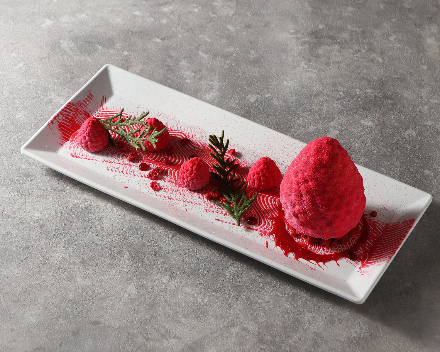 甘酸っぱいフランボワーズの香りと、ショコラの奥深い味わいが重なり合う一皿を、パティシエとの会話を楽しみながらご堪能いただけます。